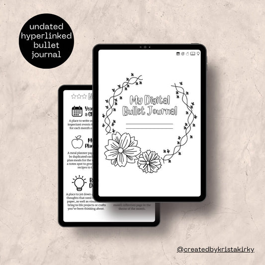 My Digital Bullet Journal - Hyperlinked, Undated, Themed Templates, Goals & Reflection, Meal Planner, Reading Journal, Brain Dump Sections